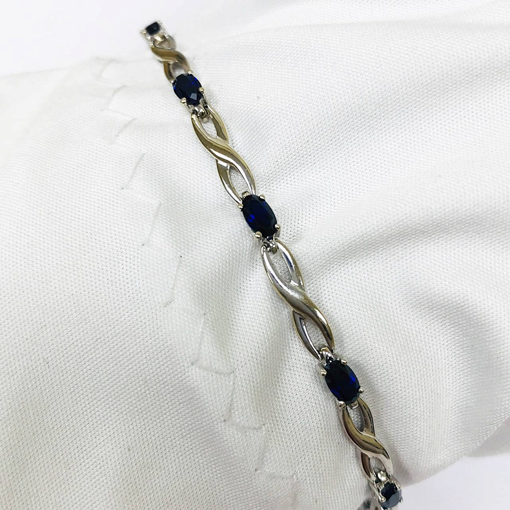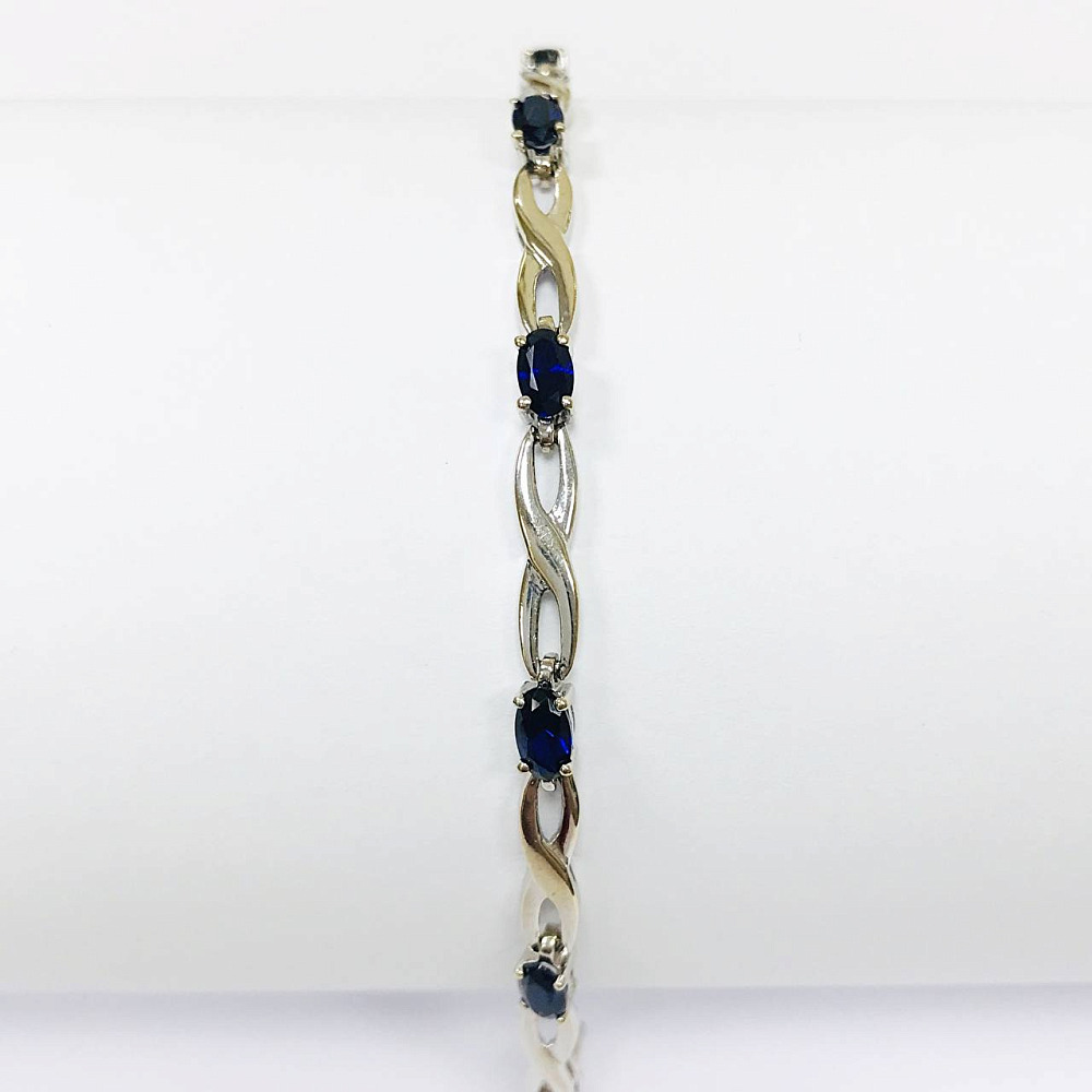 Золотой барслет с синтетическими сапфирами 18 р-р 0021000436000001
