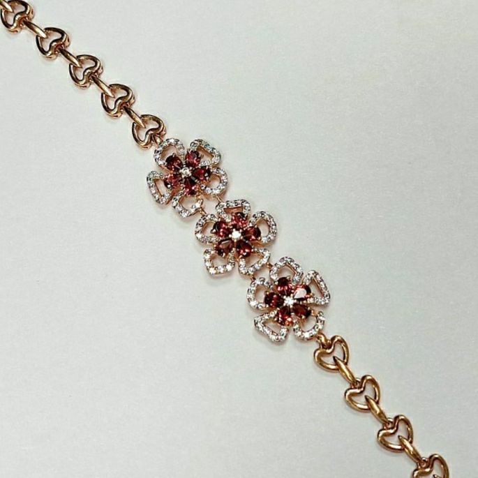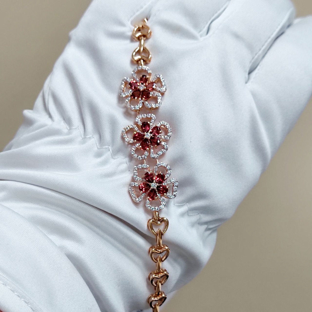 Золотой браслет с гранатом и фианитами 18 р-р 0290000212300002