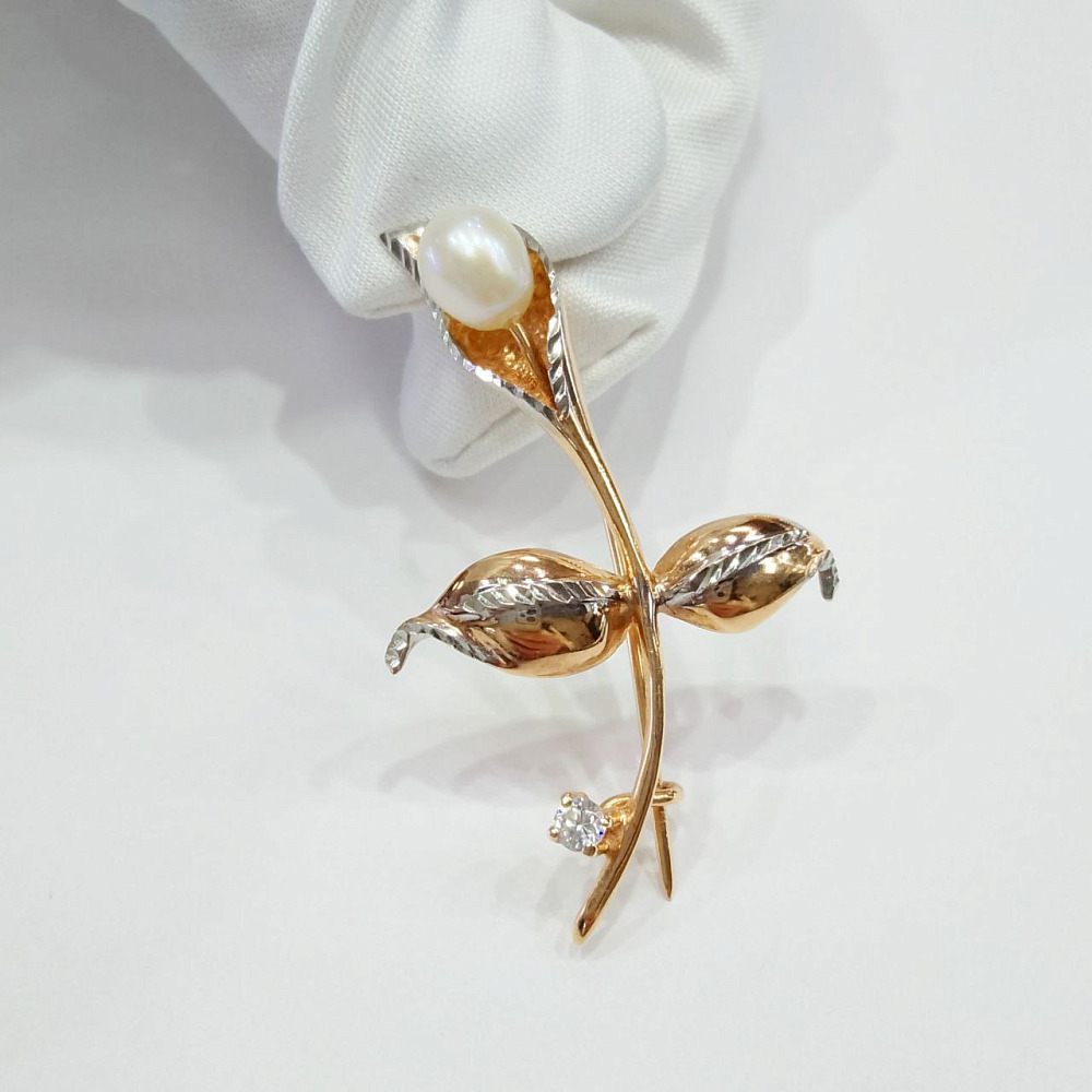 Золотая брошь с жемчугом сн16736100003