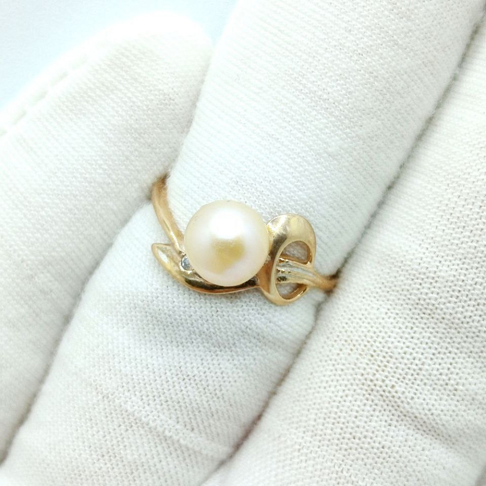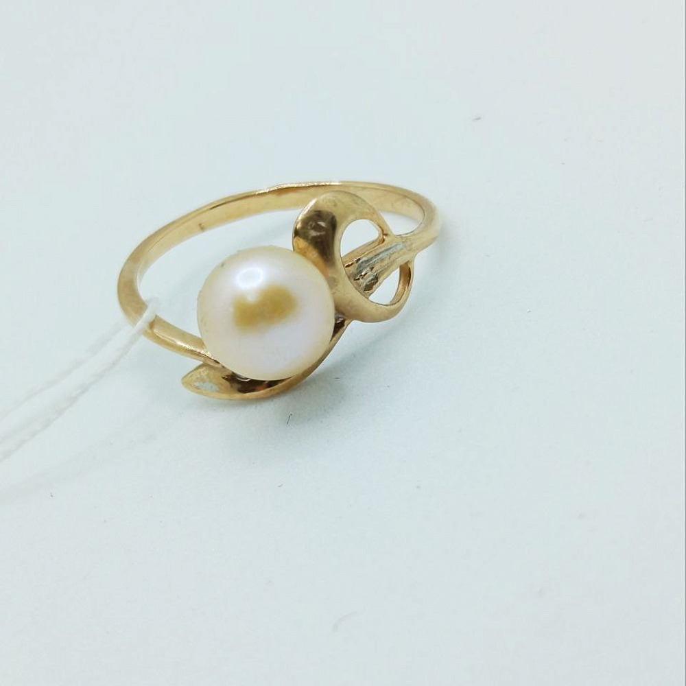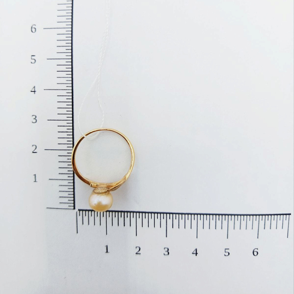 Золотое кольцо с фианитами и жемчугом р-р 17,5 0283000455000001