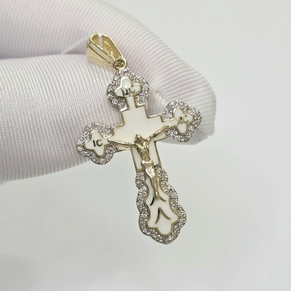 Золотая подвеска крест с бриллиантами и эмалью 0652000284800002