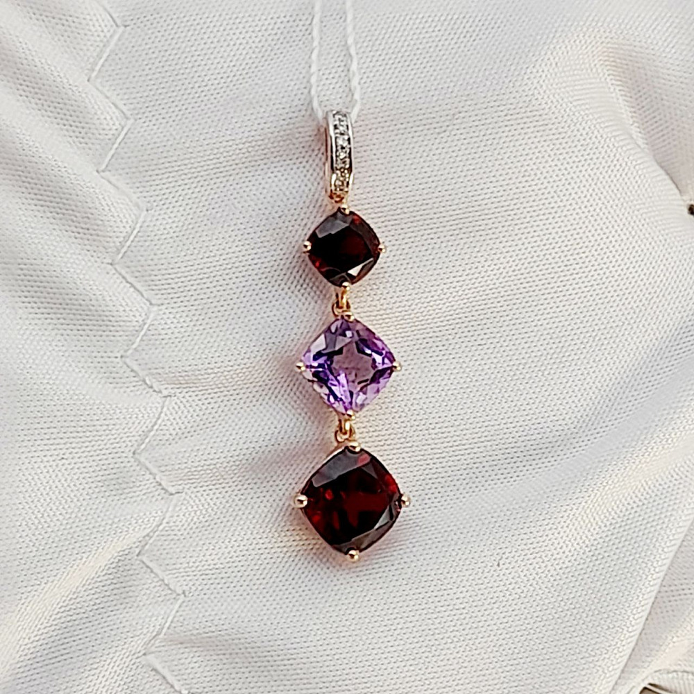 Золотая подвеска с бриллиантами гранатом аметистом 0168000287400001