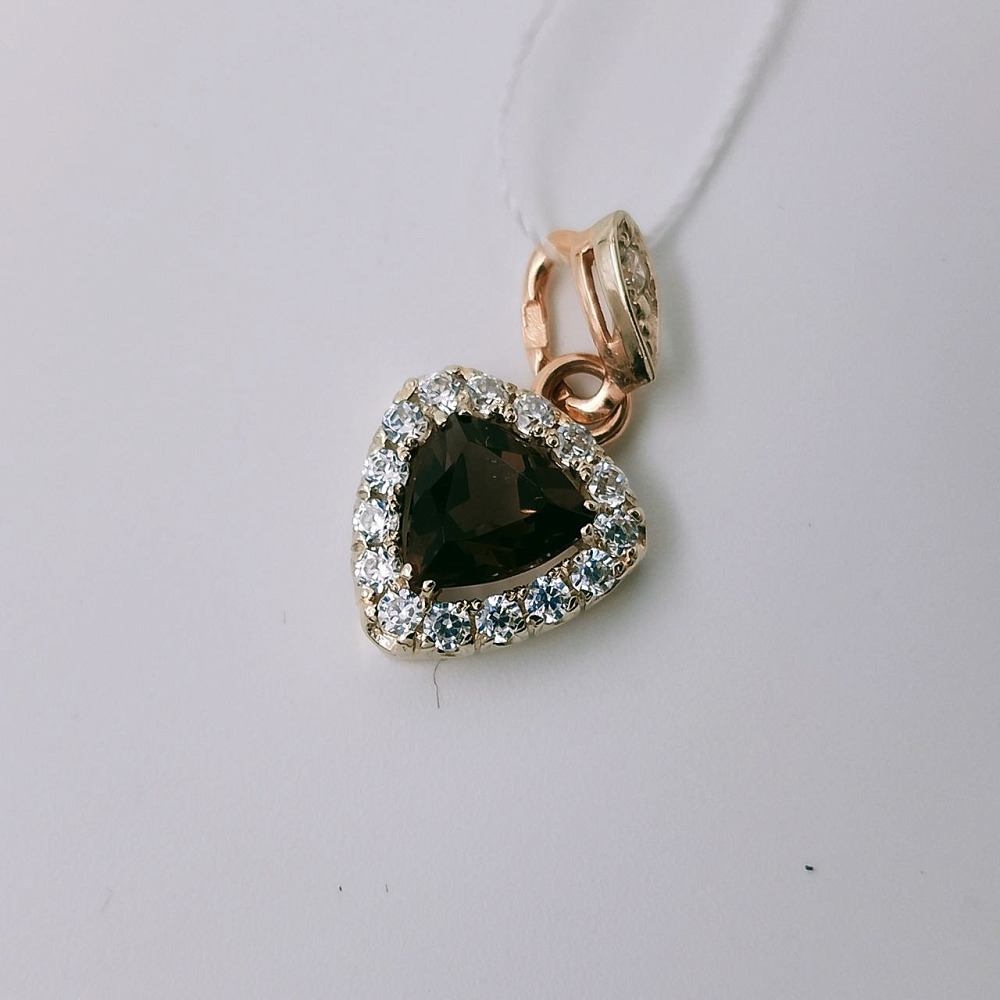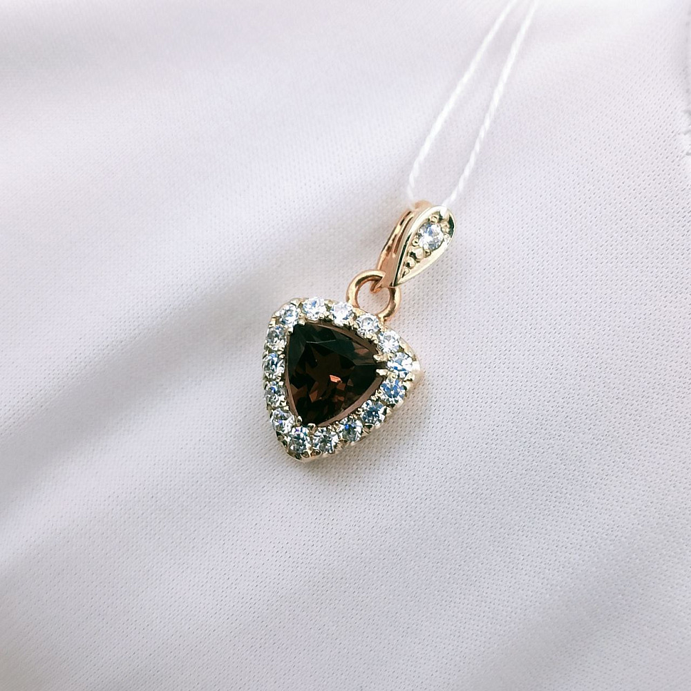 Золотая подвеска с дымчатым кварцем и фианитами 0072000724300002