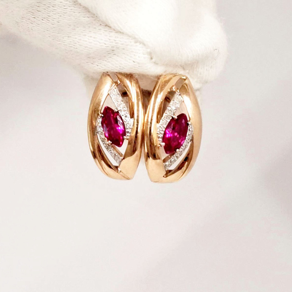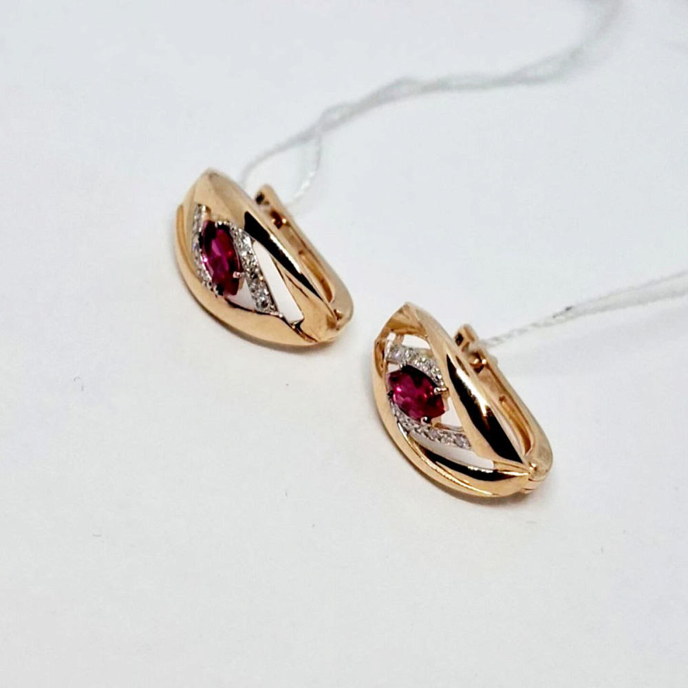 Золотые серьги с бриллиантами и синтетическим корундом 0001000390300003