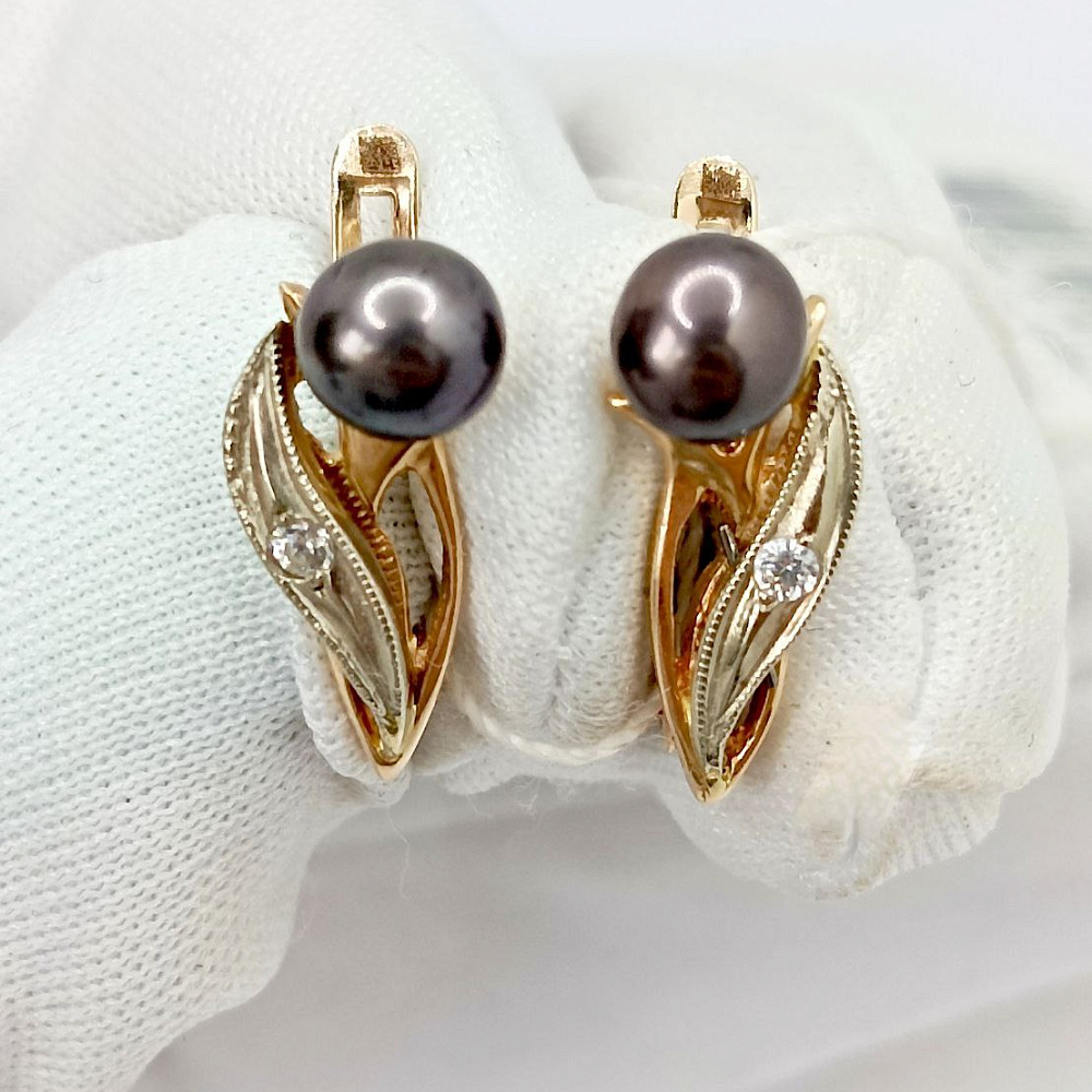 Золотые серьги с жемчугом чо34159200001
